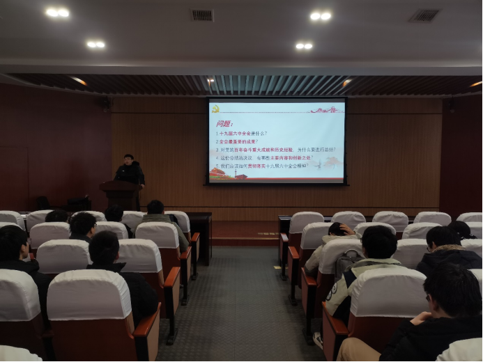 本科生机自第一党支部在机械院楼401集中学习了党的十九届六中全会精神。会议由支部书记李明泽老师主持。