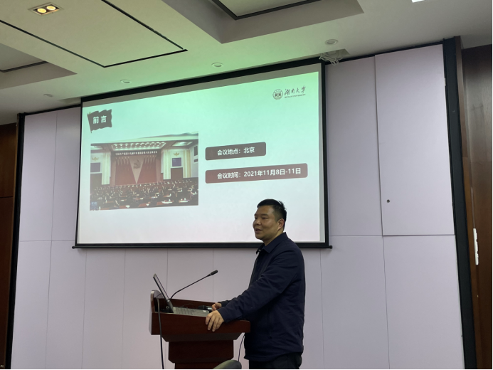2021年12月15日下午,机关党支部邀请学院党委副书记贺迅老师对十九届六中全会精神进行宣讲,机关党支部书记黄倩雯主持会议。