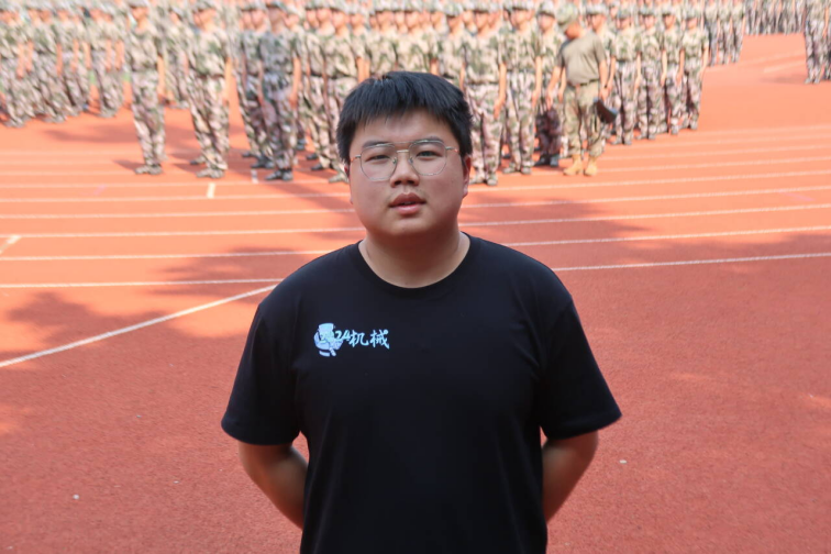 班助李凤恺看着训练场上的新生们,他谈到:“每当走到队伍旁,看到训练中的同学们身姿挺拔、整齐划一,休息时的嘹亮高歌、其乐融融,作为班助我们也发自内心的感动与快乐。”