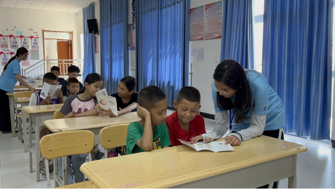 随后,团队前往村民家中,开展“推普”、“推法”活动。面对村民们一张张质朴而热情的脸庞,团队成员用亲切而生动的话语开始推广之旅。通过宣传册,图文并茂地向村民们展示着普通话的魅力。
