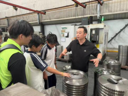 实践队员和芙蓉学子在讲解人员的介绍下了解生产车间零部件