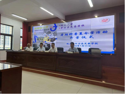 在中方县芙蓉学校的暑期实践夏令营正式开营。中方县芙蓉学校长兼书记覃周紧,副校长陈小明,中方县教育局副局长袁小云,中方县人民政府副县长刘文洋出席开营仪式。