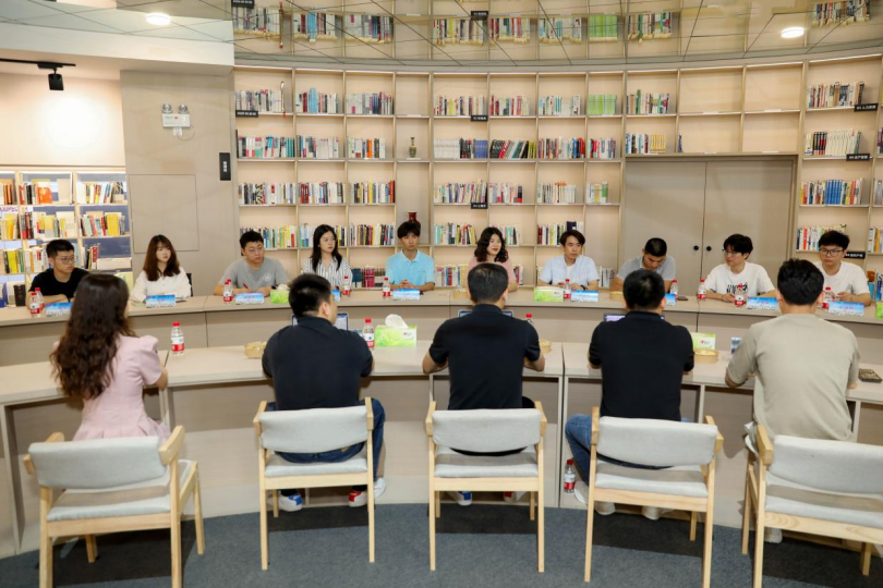 回到图书馆后,校企双方举行了座谈会。啄木鸟公司副总经理林剑华带领各部门优秀学长们与各位老师同学进行了深入的交流,同学们纷纷提出疑问和想法,何佩佩老师为公司的各位介绍了哔咔漫画