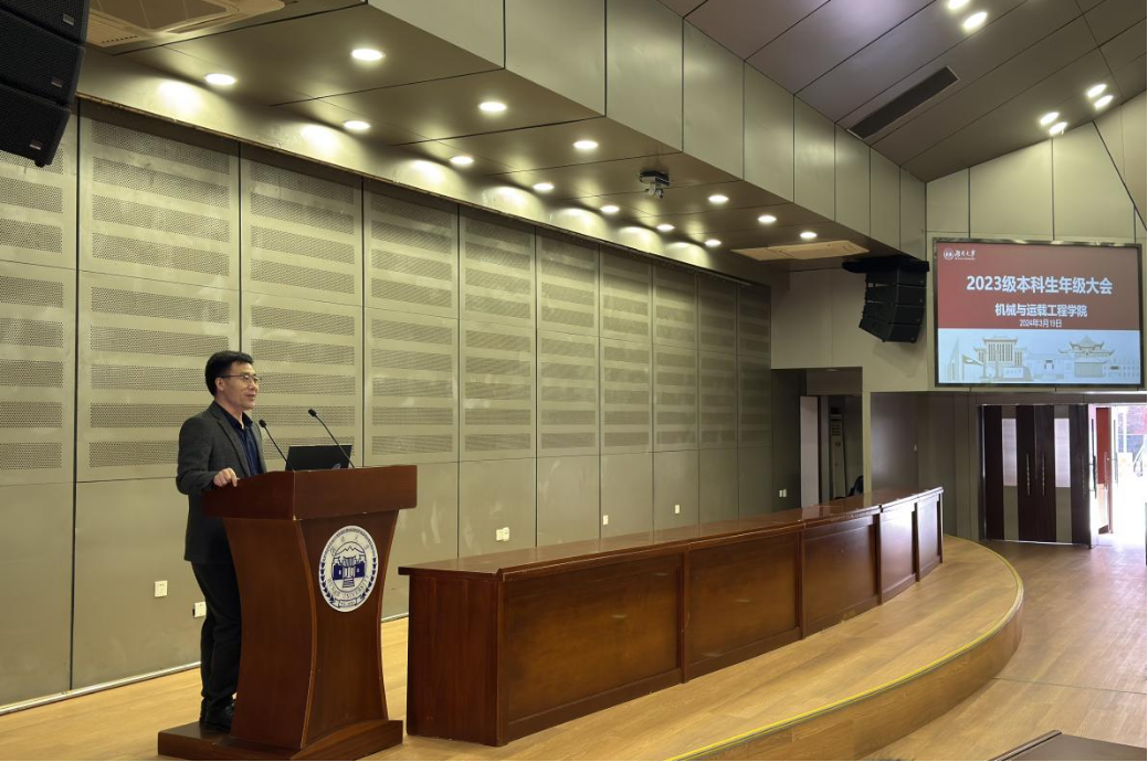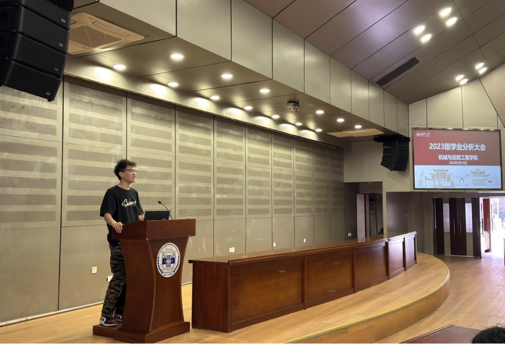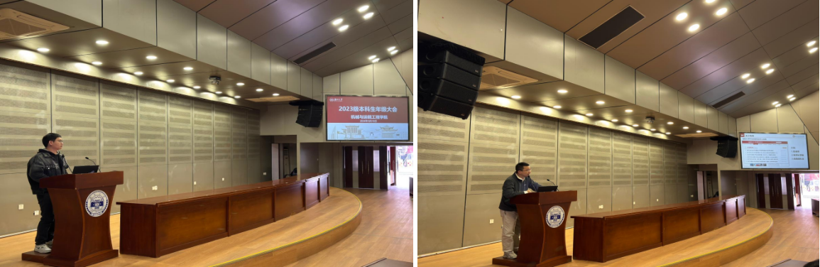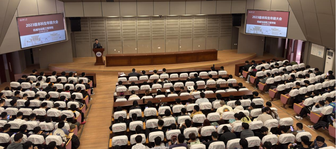 本科2023级年级大会暨学业分析大会在逸夫楼报告厅举行。机械院党委副书记刘明然、本科2023级辅导员李迪、黄敏,2020级优秀学生代表窦浩轩、程铁峰出席本次大会,大会由2023级年级长张军坤祺主持。