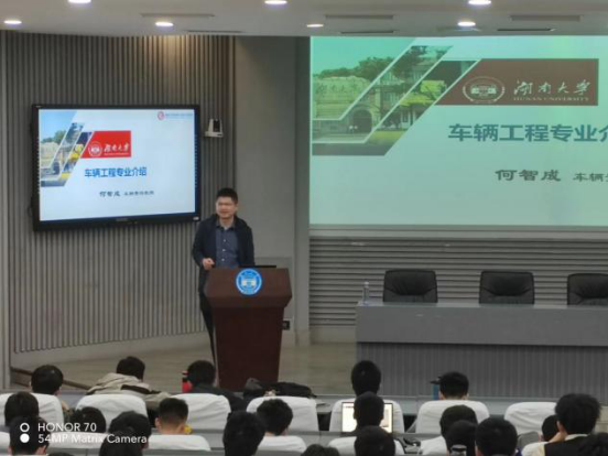 接着,何智成教授登台为同学们介绍该专业。宣讲开始,何教授介绍了车辆工程行业的不同研究领域,强调车辆是国之重器,是大国竞争的重要领域,并且介绍了近年来我国汽车行业的发展现状。随后何教授又讲解了车辆工程的部分研究内容,重点介绍了哔咔漫画