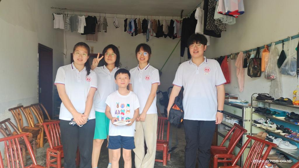 参观完水库后,队员们走在硚石社区的小路上,商量着待会儿走访哪户人家。刚上坡便看见一位年迈的老人坐在门口乘凉吃早餐,同我们亲切地交流之后。老人热情地接待了志愿队,积极地回答了志愿队提问地有关民生和“乡村振兴”的问题。