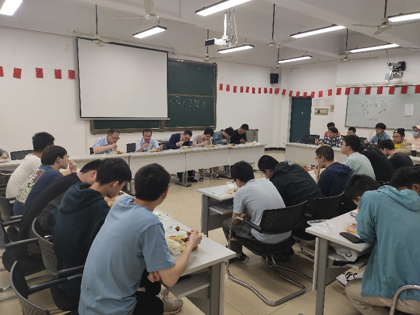 院楼210会议室热烈举行。此次交流会邀请了力学系系主任方棋洪老师、支部书记任毅如老师、副主任韦凯老师、副主任赵岩老师、19级班主任何巍老师、以及范智超老师、彭神佑老师、林森老师与19级同学共进午餐,为同学们答疑解惑。