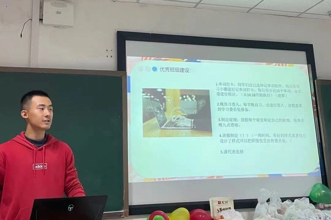 10月18日晚上,机械2101班在研究生院楼举办了以“筑梦青春”为主题的班会,旨在引领同学确立自己的目标、增强对大学生活的适应能力并激发学习的热情。本次班会由班长李鸿韬主持,并邀请到了班主任张峰老师以及两位班级助理马豪杰和王洪达。