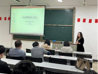 首先,马克思主义学院丁军强副教授就如何在专业课程开展思政教育提出了自己的理解,系统阐述了专业课程思政该如何做。丁教授提出在教学中开展思政教育的重点是要处理好道与术的关系,在立德树人与授业解惑之间保持张力;第二,要处理好教与学的关系,专业课程由教师主导,同时要与学生之间保持平衡;第三,要处理好批与建的关系,在批判性思维与弘扬正能量之间实现统一;第四,要处理好承与创的关系,在守正传承与改革创新之间寻求融合。