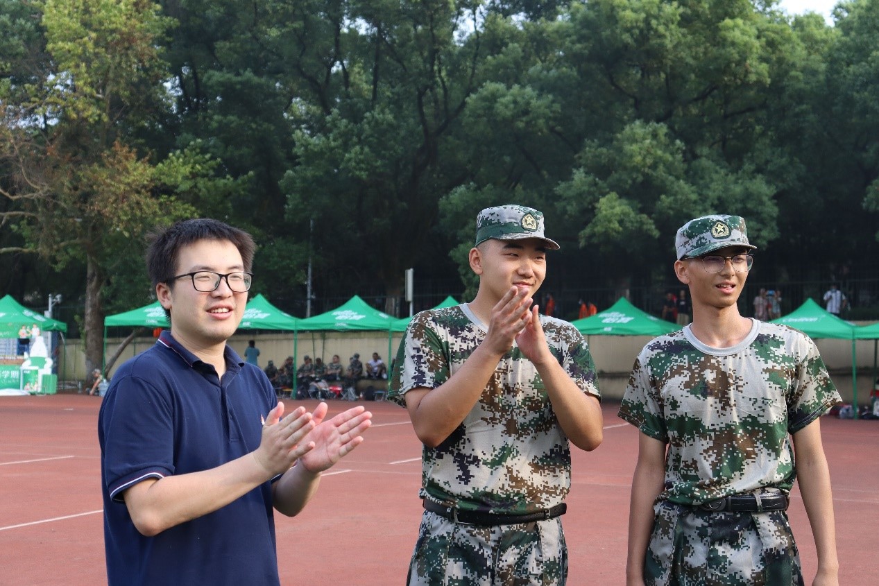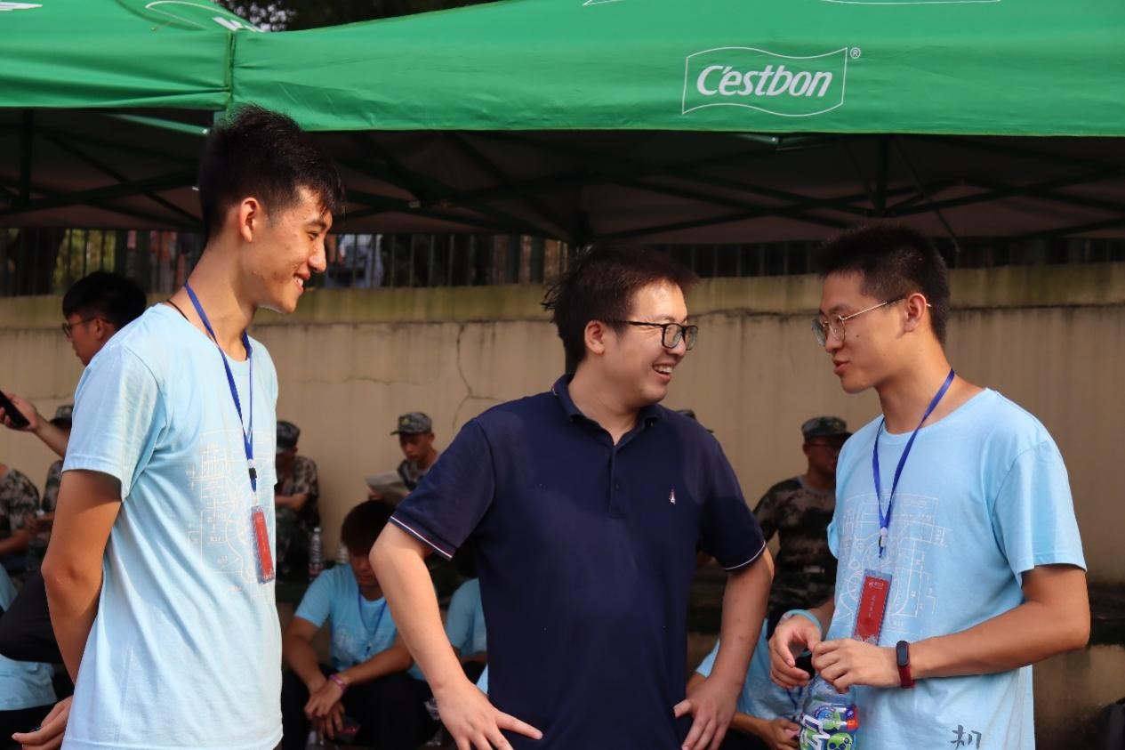机械院2021级本科新生正在接受军训的考验。机械院各班班主任都高度关注各班新生情况,在工作之余前往训练场地看望新生。