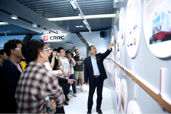 揭牌仪式后,丁荣军院士在电力机车研究所、半导体有限公司、制造与集采中心、电气技术与材料工程研究院开展移动课程思政授课。在移动课程思政课堂上,丁院士通过讲解中车株洲所发展历程、突破IGBT芯片 “卡脖子”技术、中国高铁创新发展、产业布局等生动案例,激励同学们勇攀科技高峰。