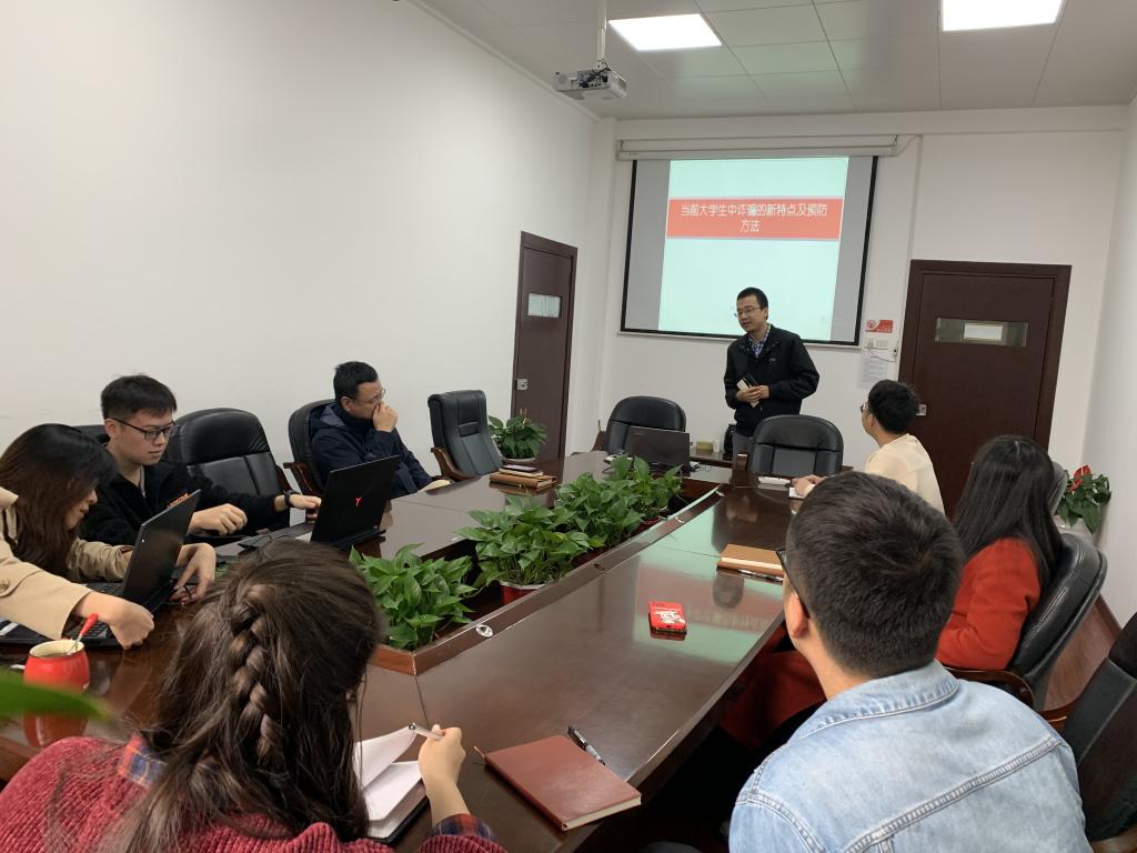 学生工作办公室第一次研学会在院楼310室举行,本次研学的主题是“当前大学生中诈骗的新特点及预防方法”,本次研学由学院安全兼干、本科生2019级辅导员李迪老师主讲,学院全体辅导员老师参与研学。