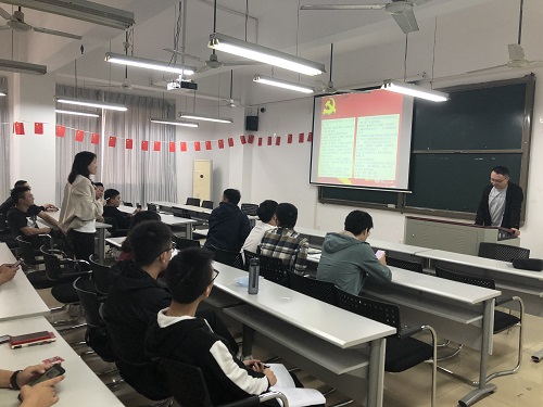 学习习近平总书记重要讲话。随后,支部同志们观看了央视新闻联播关于习近平总书记在湖南考察的报道片段,学习习近平总书记重要讲话。习近平总书记希望同学们不负青春,不负韶华,不负时代,珍惜时光好好学习,掌握知识本领,走好人生道路,系好人生第一颗纽扣。