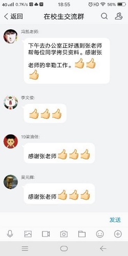 张凯老师在觉察到疫情的严重性后,便第一时间利用电话、网络等形式与团队的同学联系,了解同学们和家人的身体状态,叮嘱学生注意防护。考虑到疫情对学生研究进展,特别是毕业生研究进展影响重大,张凯老师逐一联系团队学生:与毕业生讨论大论文框架以及存在的问题和解决办法;与留学生、本科毕业设计讨论研究进展与工作计划;指导其他研究生在家开展科研工作。在得知很多同学大部分资料都没有拷贝回家,张凯老师统计好团队学生需要的资料后,在做好防护的前提下累计三次进入到办公室,逐一把学生需要的资料拷贝后发送给各位同学,解决了学生们的燃眉之急。拷贝资料期间,经历有学生忘记电脑密码十来次反复尝试、有学生资料拷贝多达25G、有学生电脑发生故障等诸多困难,但最终都被一一克服,张凯老师心系学生的暖心举动受到团队教师和学生的一致好评。