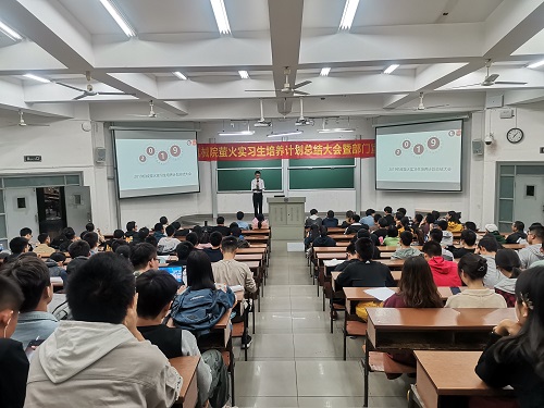 萤火实习生培养计划总结大会暨部门宣讲会于复临舍301顺利召开。机械院院团委书记孙文婷老师辅导员李明泽老师、院团委学生会主席吕凌泰、多位学长学姐、实习生小组组长以及全体实习生参加了此次大会。