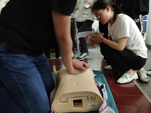 在讲座最后,朱老师及其助手通过分组,让大家逐一利用假人模型实操,并在操作过程中讲解同学们的不足并强调操作要点,同学们通过实操切实体会了医疗救治的艰辛,为此次能够亲身体验急救感到兴奋,也由衷为老师的热情讲解表示感谢,希望类似的讲座能在机械院更多地得以开展。