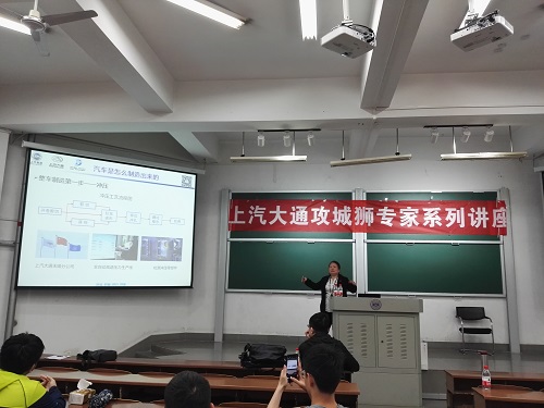 整个讲座分为以下几个内容:车身及其内外饰的子系统简介、汽车的制造过程、汽车车身及整车的开发流程。王琼老师在讲座中由浅入深,从讲解车身、底盘、动力总成等汽车部件,到分析汽车车身制造中所使用的各种工艺,再到整车制造过程的各项流程,王老师为我们带来了一场精彩绝伦的讲解。为了让同学们更加直观的了解到汽车制造的工艺,王老师用随身携带的企业生的产零件为示例,详细地向我们介绍了冲压、涂装、焊接和总装的流程和注意事项。