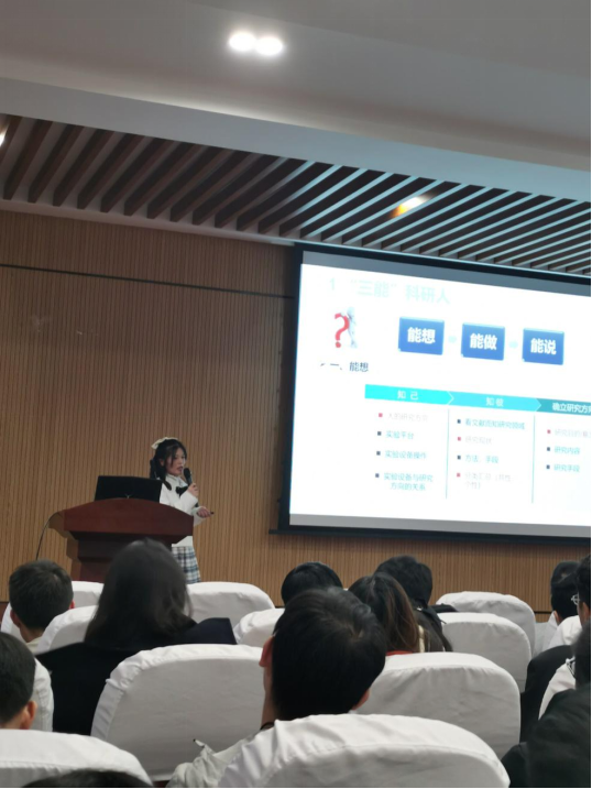 在学院组织的优秀研究生就业经验分享会上,邓可可围绕着“如何开展科研工作、撰写SCI论文”为主题做分享报告。分享报告受到了大家的认可,获得了大家热烈的掌声。正因为曾经在科研上走过弯路,所以邓可可才更加希望能够分享自己的经历,给大家“避避雷”。