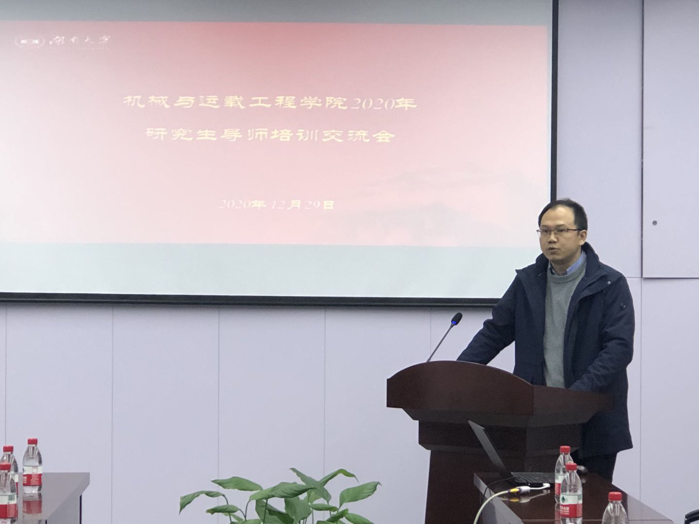 12月29日下午,我院研究生导师工作会议暨《研究生导师指导行为准则》专题培训会在机械楼316会议室举行。研究生导师、人才培养办相关老师参会。会议由主管研究生工作副院长冯凯教授主持。