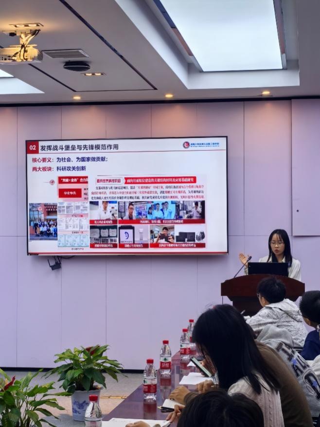 研工部副部长谭凤娥老师为党支部品牌建设提供指导,希望通过样板党支部的创建,进一步激发学生的爱国情怀,引导学生深度参与解决国家重大战略问题。