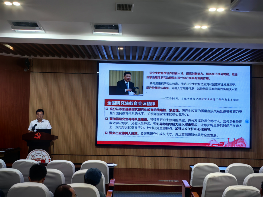 在院楼401报告厅召开研究生导学关系专题培训会。院党委副书记刘明然以《和谐导学立德树人》为题做专题报告,院党委书记刘喜东做总结讲话。