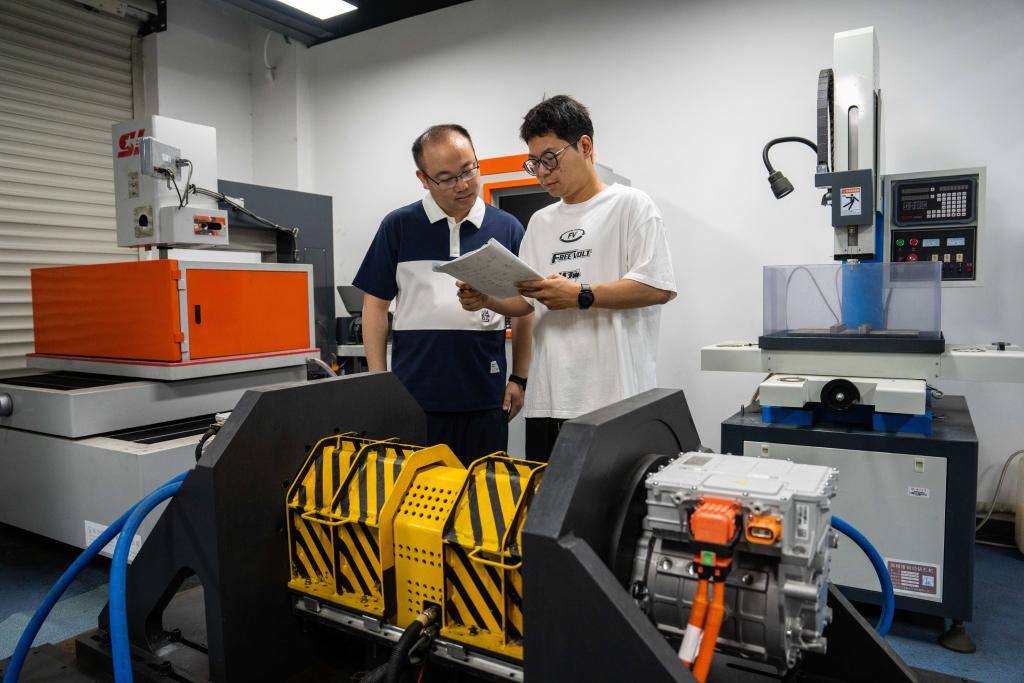 智能运载系统创新中心三电性能测试实验室,邵海东和团队成员正在对一款即将上市的新能源汽车驱动电机进行健康管理测试。