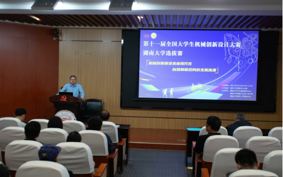 和现代工程训练中心联合承办,分设兴农机械、仿生青蛙和仿生蝴蝶三个赛道进行,兴农机械采用评委专家组评定制,仿生青蛙和仿生机械采用竞赛制,分赛道按比例决出一、二、三等奖,并择优选拔参加省赛作品。
