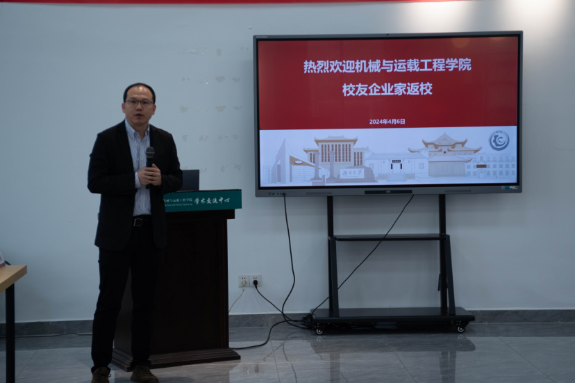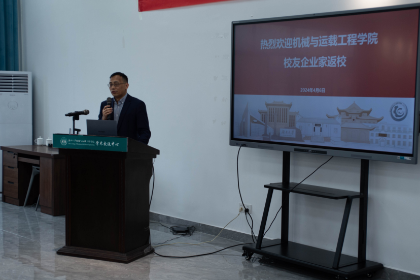 冯凯向校友企业家汇报了机械院近年来的发展建设情况。他从学院师资队伍、人才培养、科学研究、社会服务等方面做了详细的报告,并特别介绍了学院所属相关研究院及依托学院力量孵化的企业情况,希望与校友企业加强校企合作。