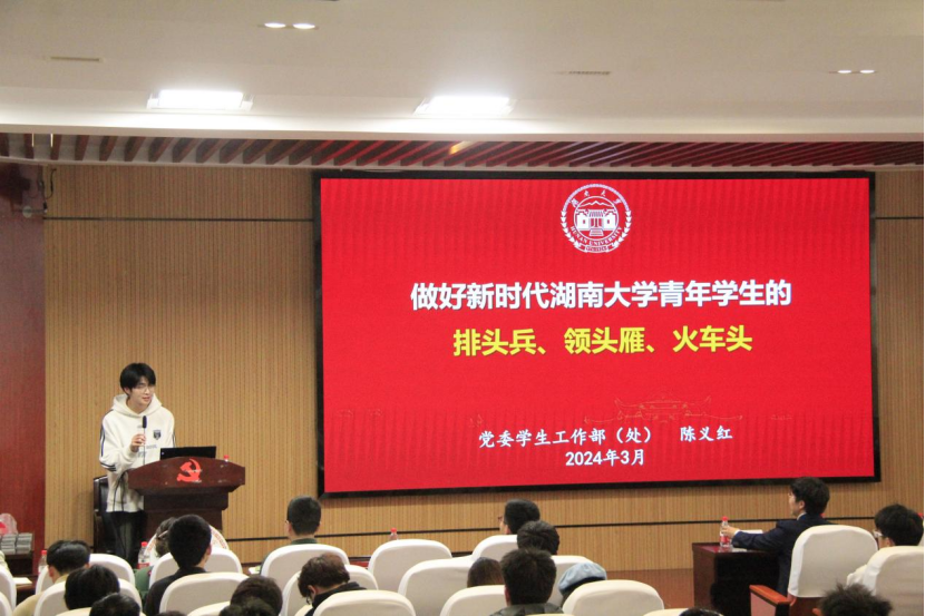 陈义红结合自身经历引入对"学生干部"一词的阐释,强调了学生身份和干部责任的双重属性,明确了学生干部的责任与初心,深入探讨了新时代青年和新时代湖大青年的特点和使命。她指出,新时代湖大青年需要把握时代大势、传承湖大精神,并强调成为新时代湖大青年需要德才兼备,坚持爱国爱党,努力成长为经世致用的领军人才。最后,她呼吁学生干部要形成"让我来"的意识,落实"一起来"的行动,培养"向未来"的素质,不忘初心,满怀热情,鼓励学生干部为做好学生工作而持续努力。