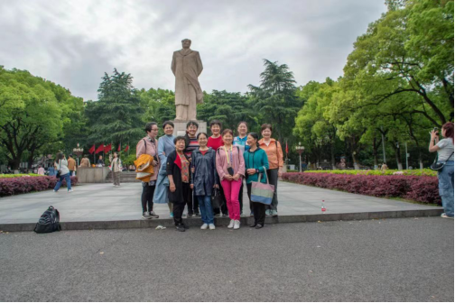 从岳麓书院离开后,师姐们来到东方红广场合影,随后前往哔咔漫画