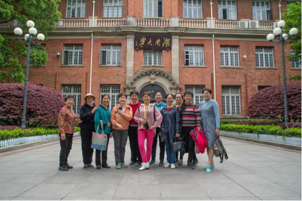 执行院长姜潮、党委书记彭晓燕,党委副书记贺迅、校友会工作主管迪里胡玛,在学院门口热烈迎接各位校友师姐一行人,并由我院校友助管组织同学带领师姐们切身感受湖大千年不变的韵味和历久弥新的面容。