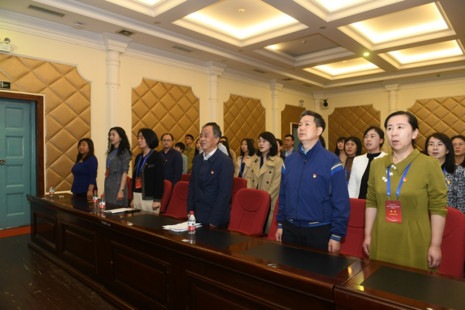 伴随着雄壮的义勇军进行曲,全体学员起立齐声高唱《中华人民共和国国歌》。随后,女工委党小组组长孟庆国同志作为领誓人带领大家重温入党誓词,并做党建强会特色活动学习班开班发言。孟庆国同志详细介绍了实施党建强会活动的必要性和重要性,希望通过在湖南第一师范学院“走出去”的主题党日活动,使党员同志进一步增强“四个意识”、坚定“四个自信”、做到“两个维护”,以党员标准严格要求自己,发挥党员的先锋模范作用。在科研工作中,要坚持目标导向,服务国家重大需求,解决的不是自己的“小题”,而是国家的“大题”。