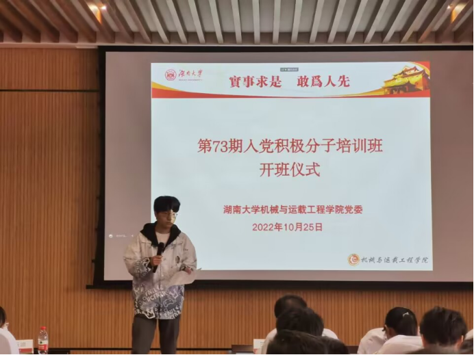 第73期入党积极分子培训班开班仪式在机械院401顺利召开。学院党委副书记贺迅老师,学院学生党务服务中心王玉迪老师,以及我院第73期入党积极分子参加了本次大会,会议由学生党务服务中心办公室王梓堃同学主持。