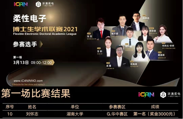 11月12日,由浙江清华柔性电子技术研究院联合艾瞰(iCAN International Contest of innovAtioN)举办的“2021年全国柔性电子博士生学术联赛总决赛”圆满落下帷幕,来自清华大学、北京大学、中科院等高校和科研院所的100名博士研究生参加了比赛。经过十大赛区的层层选拔,我院2018级博士研究生刘怀志成功入围华中科技大学黄永安老师领衔的华中赛区,并凭借其研究课题“柔性智慧微金属网格”在开赛阶段以优异表现荣获“单场冠军”,同时在总决赛舞台上凭借精彩发挥荣获“年度优秀奖”。该赛事由哔咔漫画