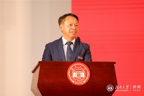 段献忠分别为中国大学生电动方程式大赛获奖团队、“互联网+”大学生创新创业大赛主赛道金奖团队、全国高校研究生样板党支部、全国党建工作样板党支部、龚娟、刘松等七个年度突出团体和个人代表佩戴“湖大以你为荣”绶带。