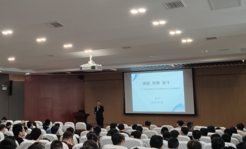 2019年10月18日上午8点30,我院进行2019级新生党员培训班第一次集中授课—“感恩 珍惜 奋斗-用习近平新时代中国特色社会主义思想铸魂育人”专题培训,出席此次活动的有马克思主义学院教授、清华大学博士龙兵教授、2019级研究生辅导员黄倩雯老师及全体2019级新生党员。