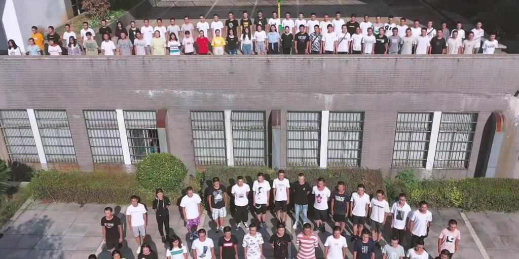 全体学生们在机械院的院楼前歌唱