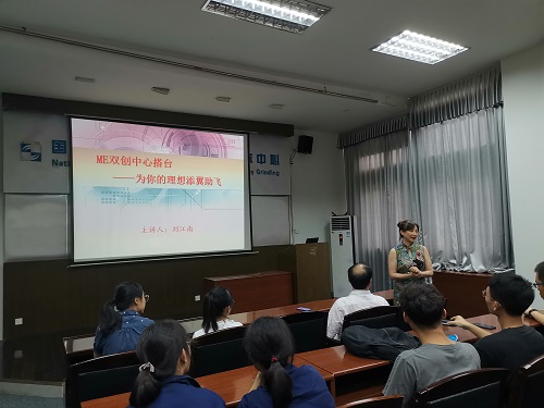 刘江南老师通过举例鼓励各位同学抓住身边的训练机会,积极开拓自己的思维,提高自主创新能力。同时看到同学们身穿工训服装,提醒大家在工作的同时一定要加强安全意识,生命宝贵,要注意自己的人身安全。并在接下来的讲解中为同学们详细介绍了创新创业教育中心组织结构、师资队伍以及设施场地等,号召同学们积极参加,为中心注入新鲜的血液。