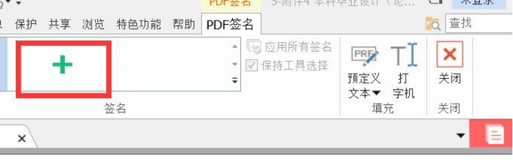 3.点击 PDF 签名保护功能中的“+”号添加签名。