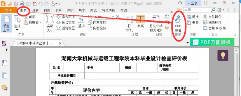 2.使用福昕阅读器打开相关 pdf 文档,点击“pdf 签名保护”按钮
