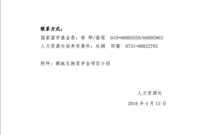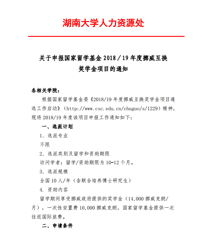 关于申报国家留学基金2018/19年度挪威互换奖学金项目的通知