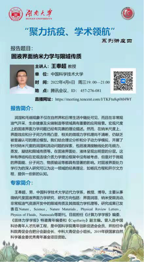 报告题目:固液界面纳米力学与限域传质