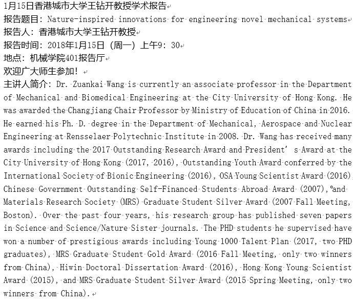 1月15日香港城市大学王钻开教授学术报告